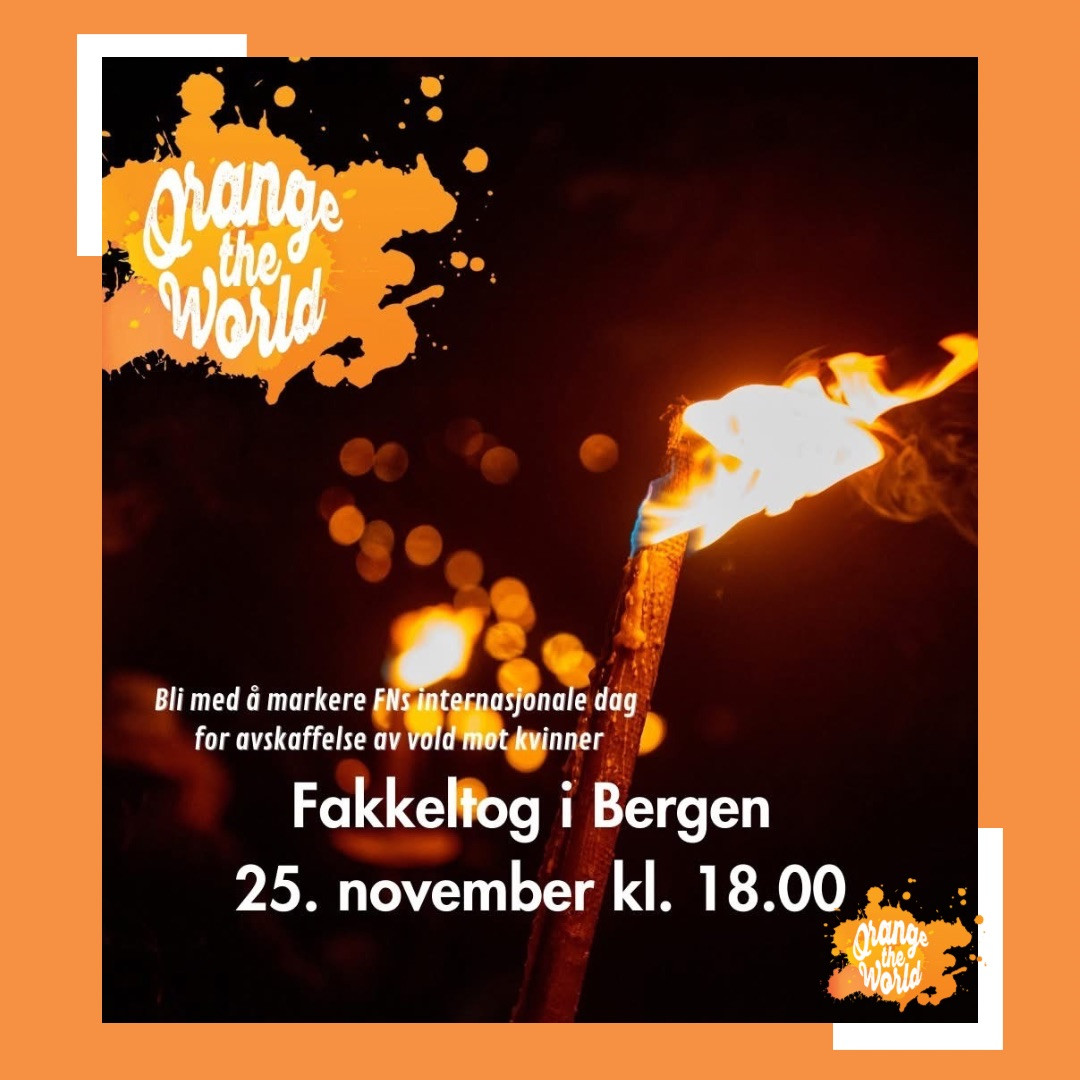 Denne dagen markerer starten på 16-dagers kampanjen. Vi møtes til appeller, lyssetting av Bergen gamle rådhus og fakkeltog.