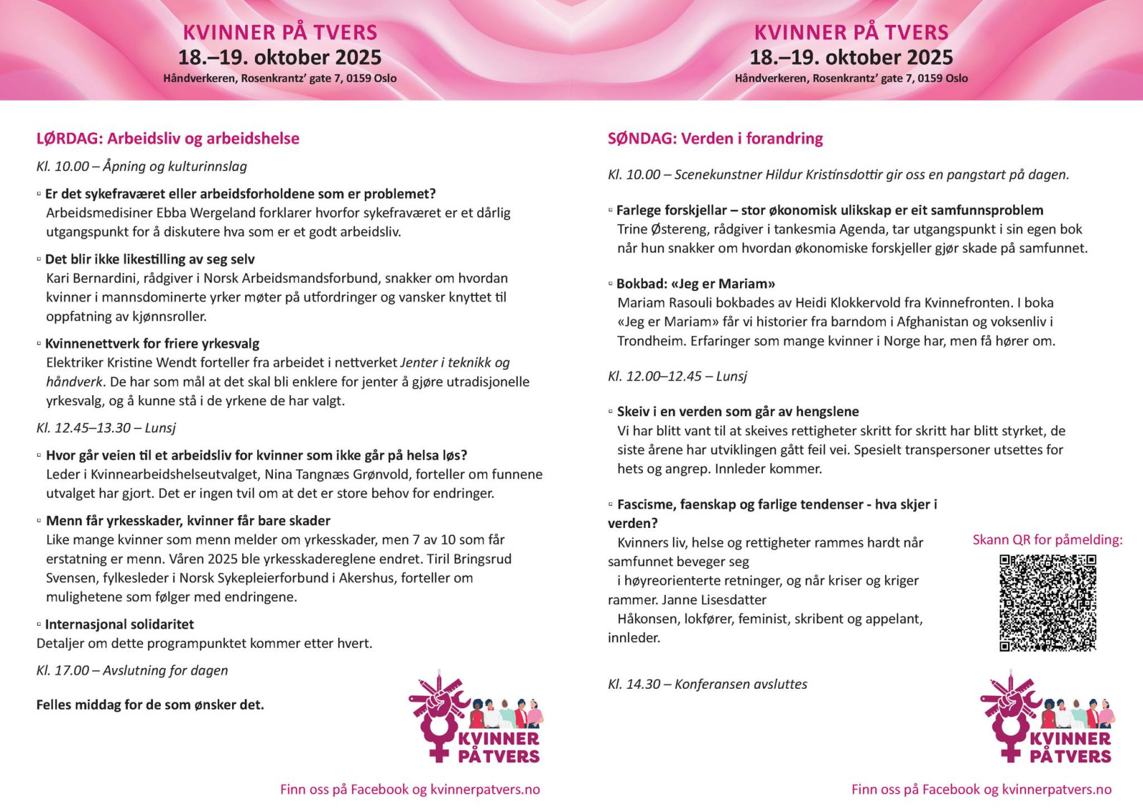 Vi møtes én helg hver høst for å diskutere lønnskamp, kvinnehelse, likestilling, internasjonal kvinnekamp og ennå litt til.