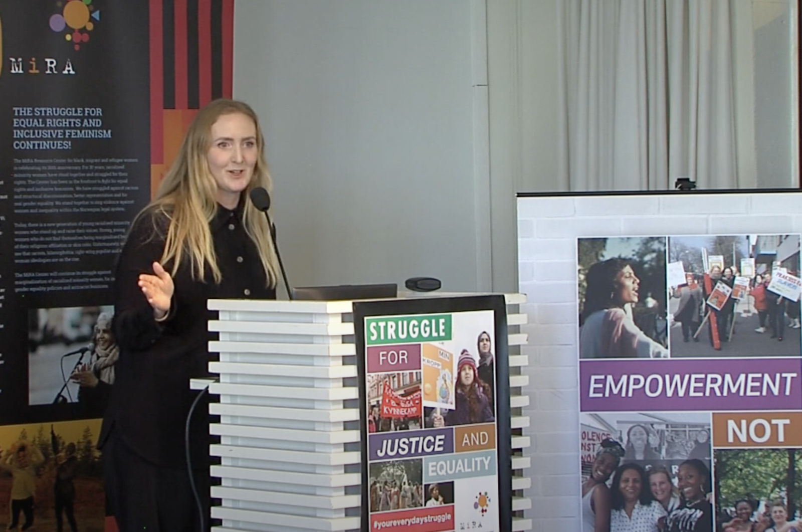 Leder for Norges kvinnelobby Lone Alice Johansen holdt innlegg om det voldsforebyggende arbeidet på MiRA-Senterets lunsjseminar Beijing+25 5. mars. Se innlegget her.